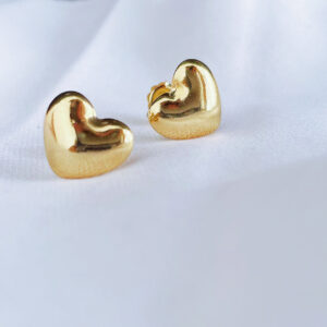 Brinco Coração metade Liso/Metade Zirconia 15mm
