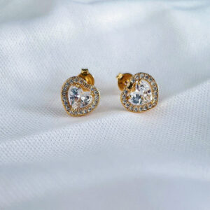 Brinco Coracaozinho cravejado Zirconia com coração Central de 6mm