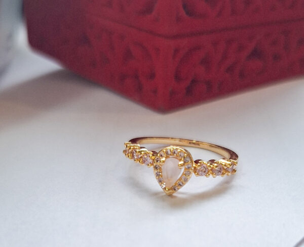 / Anel Solitário Formato Gota Quartzo com 3 Zirconias na lateral
