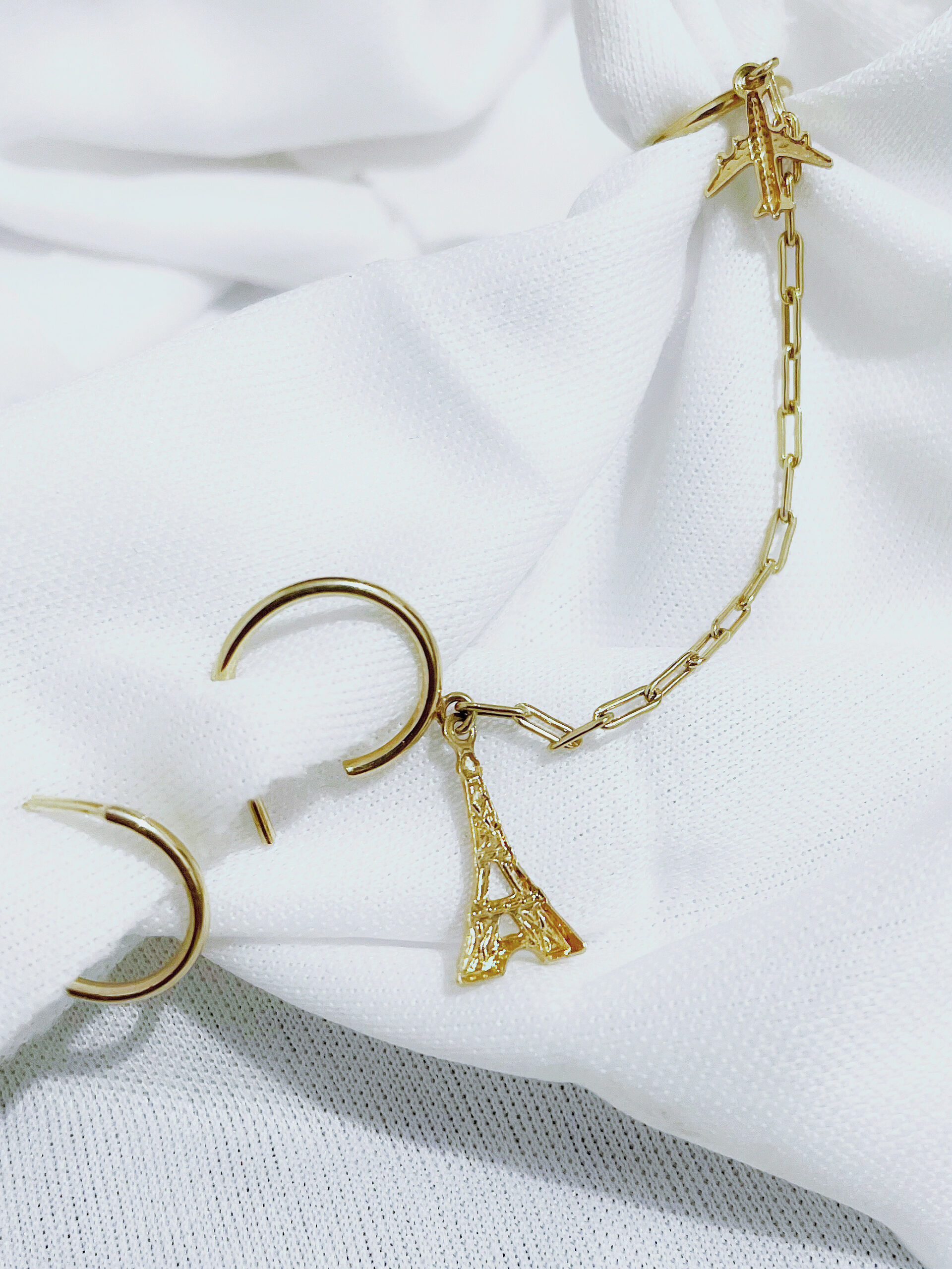 Brinco Argola Torre Eiffel e piercing com avião com argolinha