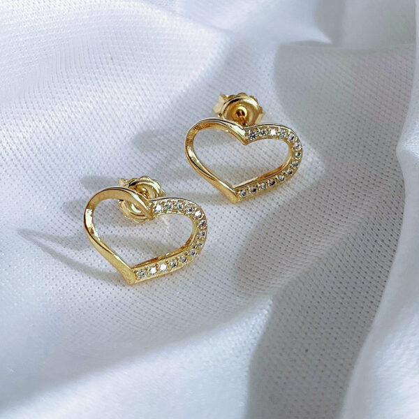 Brinco Coração metade Liso/Metade Zirconia 15mm quantidade