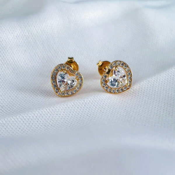 / Brinco Coracaozinho cravejado Zirconia com coração Central de 6mm