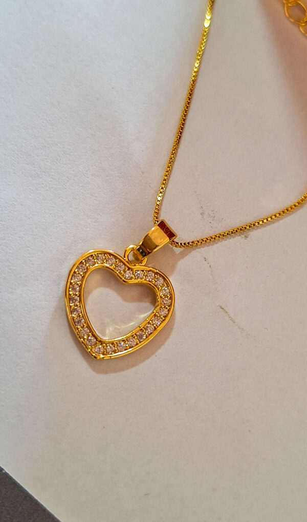 / Gargantilha Coração Vazado Cravejado em Zirconias