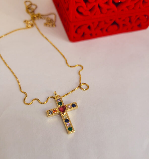 Gargantilha Cruz 25mm Cravejada e Zircônias Coloridas