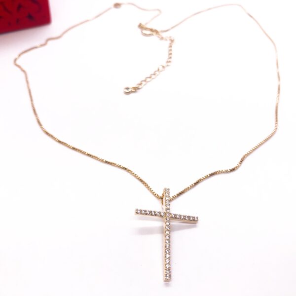 / Gargantilha Cruz palito Cravejada com zircônia